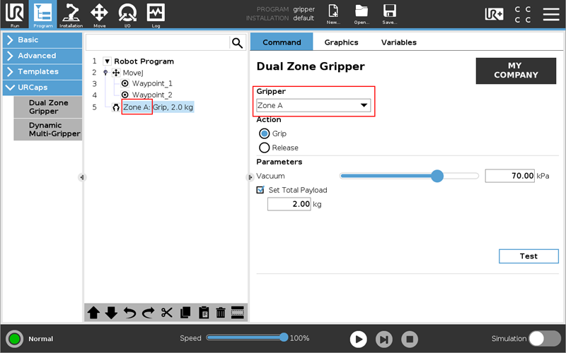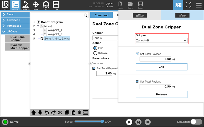 - This new capability can be registered, if the gripper (URCap) supports a set of multiple individual grippers/zones from which the end user can select an individual gripper/zone to operate